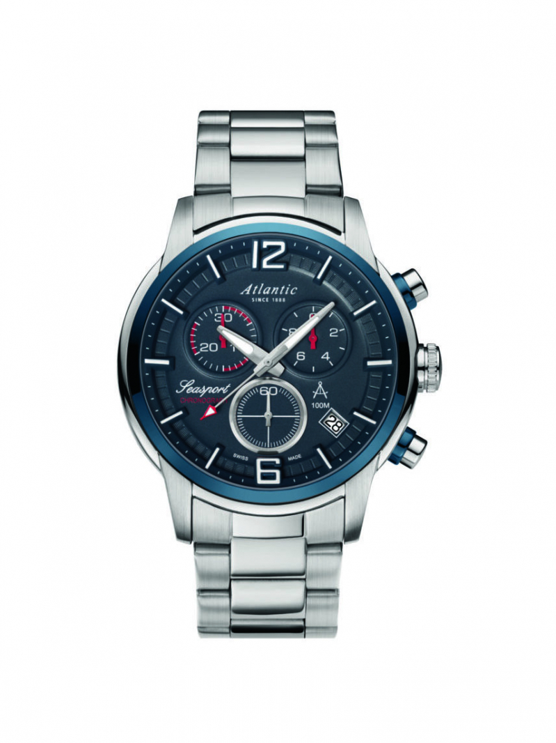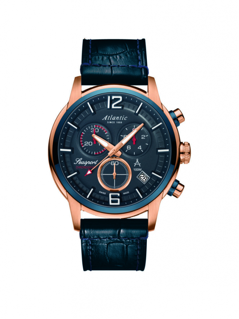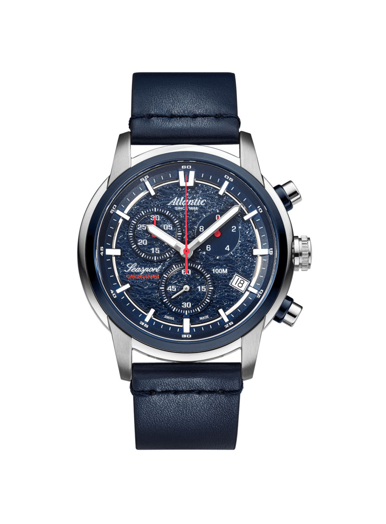 Диаметр: 46 мм. Калибр: ETA G10.212. Кварцевый хронограф. Индикация даты. Часовая шкала: Накладные часовые метки. Стрелки: Стальные с покрытием SuperLuminova. Синий циферблат. Браслет: Кожаный ремешок синего цвета. Классическая пряжка. Международная гарантия 2 года.